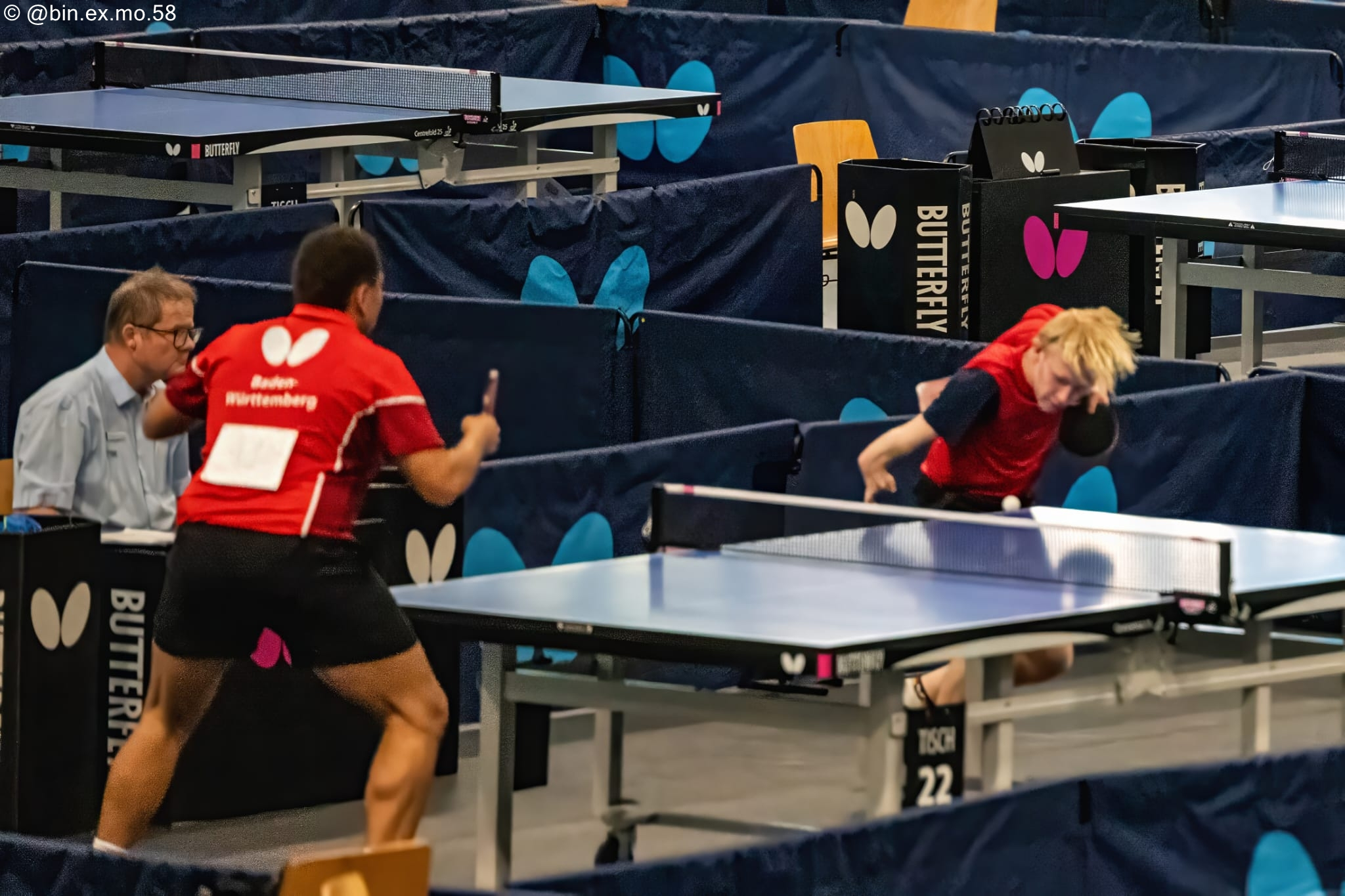 Für viel Szenenapplaus auf den Rängen sorgten Spieler wie Thorsten Schwinn (BSV Walldorf), der seit seiner Kindheit auf Grund einer Amputation des rechten Beines mit einer Krücke spielt und sich in einem packenden Fünfsatzfinale gegen Jochen Wollmert durchsetzte. Oder der mehrfache deutsche Jugendmeister Mio Lukas Wagner vom Krummesser SV – dem Linkshänder fehlt auf der rechten Seite einer von zwei Unterarmknochen -, der als Regionalligaspieler für begeisternde Ballwechsel sorgte.