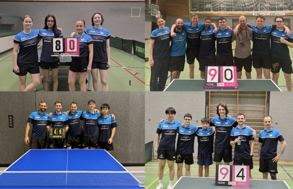 Die meisterlichen Landesklasse-Frauen fertigten am letzten Spieltag die SpVgg Renningen mit 8:0 ab, gerade einmal drei Sätze wurden dabei abgegeben. Die Männer IV sicherten sich den Ligaverbleib in der Kreisliga A durch ein 9:4 über TT Mötzingen II. Vor allem Alan Wu und Jakov Stojanoski präsentierten sich in Spiellaune, sie waren an sechs Punktgewinnen beteiligt.